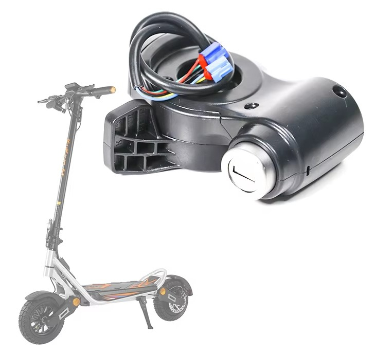 Acceleratia cu contact pentru trotineta electrica Kukirin A1 permite controlul vitezei trotinetei si pornirea sistemului electric prin intermediul contactului cu cheie integrat.