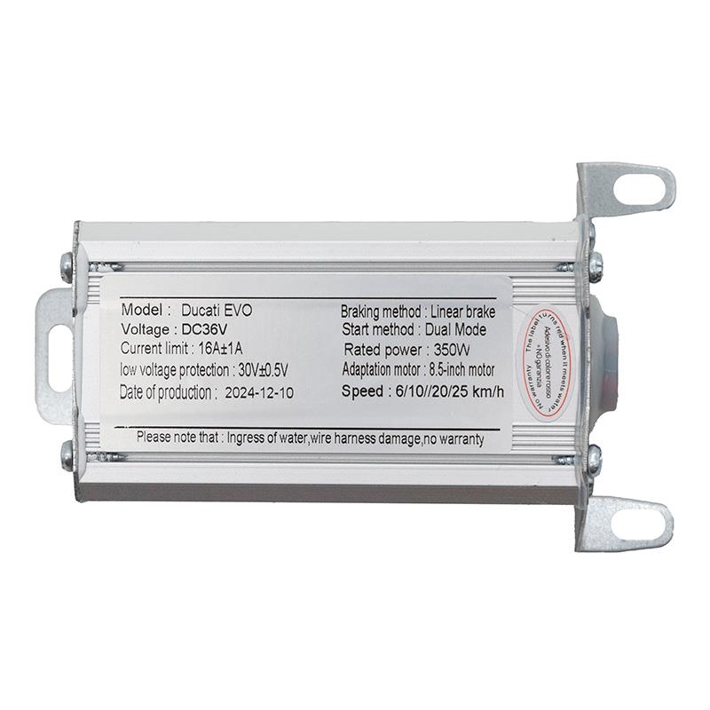 Descriere: Reda agilitatea si performanta trotinetei tale cu controllerul original pentru Ducati Pro I Evo. Aceasta unitate centrala de procesare este inima sistemului electric, fiind calibrata special pentru a livra puterea caracteristica brandului Ducati intr-un mod liniar si controlat. Proiectat pentru sistemul de 36V, controllerul asigura o comunicare fara erori intre baterie, motorul de 350W si display-ul LED, optimizand in acelasi timp consumul de energie pentru o autonomie maxima.